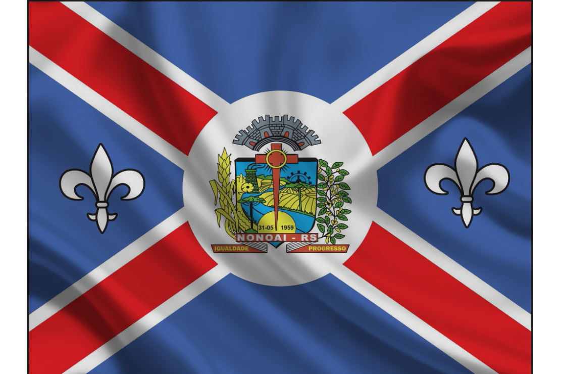Bandeira oficial do município de Nonoai - RS, confeccionada em poliÉster, em diversos tamanhos, com brasão dupla face, tralha reforçada e costuras duplas .