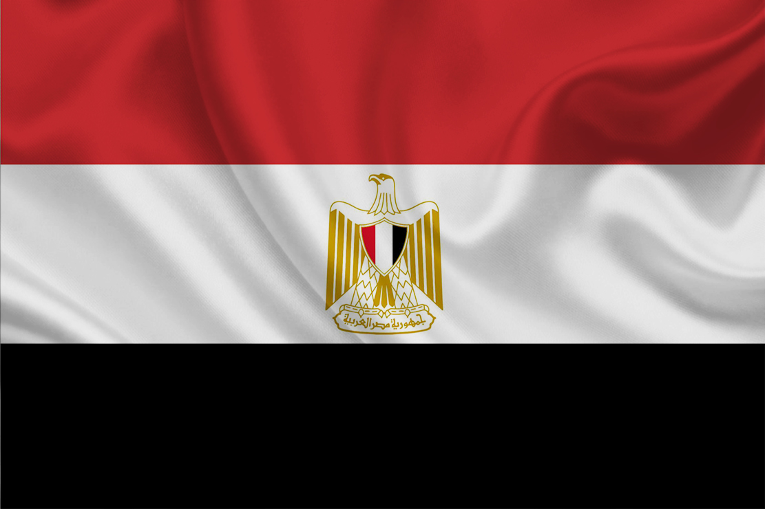 Bandeira oficial do Egito, confeccionada em poliéster oxford, com emblema estampado e aplicado tecido sobre tecidos costurados entre si, dupla face, tralha com alças em cordão e costuras duplas, na medida 90x129cm. Para outras medidas entre em contato via WhatsApp 51 984062653
