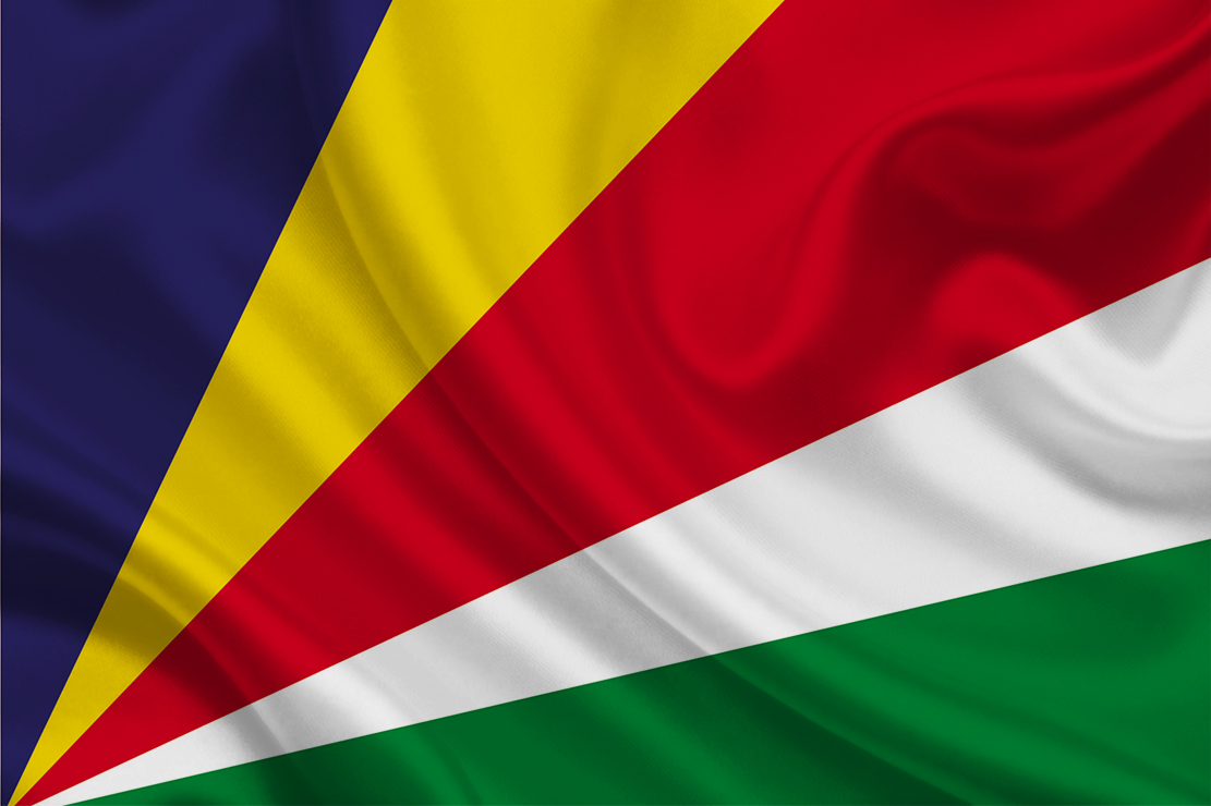 Bandeira oficial de Seicheles, confeccionada em poliéster oxford, totalmente estampada e em tecido duplo, tralha com alças em cordão e costuras duplas, na medida 90x129cm. Para outras medidas entre em contato via WhatsApp 51 984062653