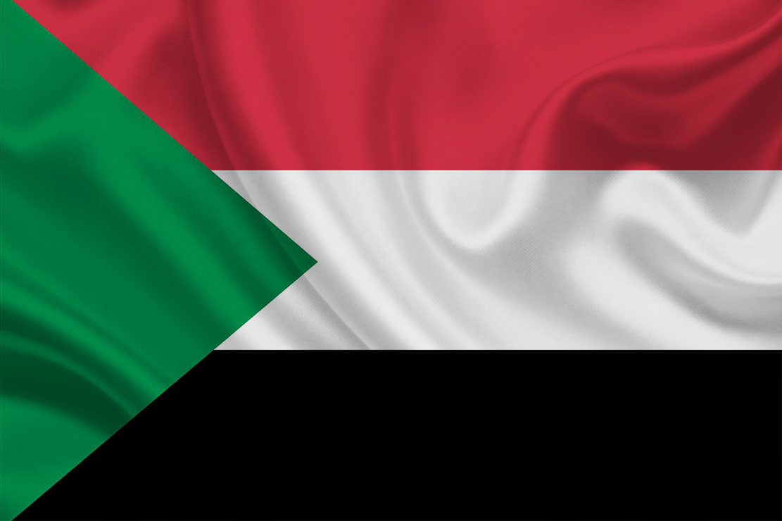 Bandeira oficial do Sudão, confeccionada em poliéster oxford, com emblema estampado e aplicado tecido sobre tecidos costurados entre si, dupla face, tralha com alças em cordão e costuras duplas, na medida 90x129cm. Para outras medidas entre em contato via WhatsApp 51 984062653