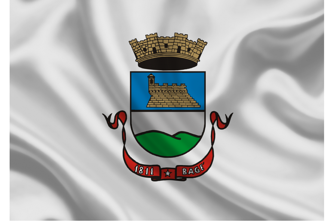 Bandeira oficial de Bagé, município do estado do RS, confeccionada em poliéster, em diversos tamanhos, com brasão dupla face, tralha reforçada e costuras duplas .