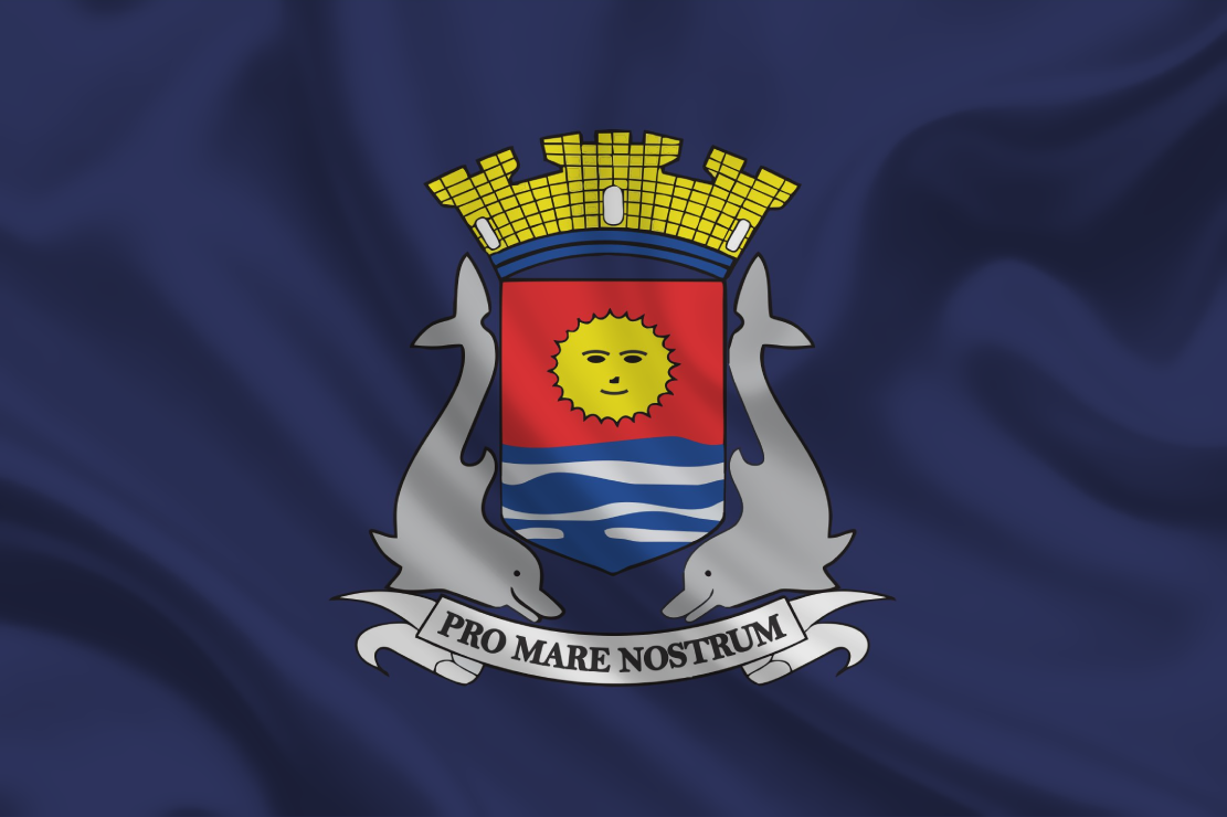 Bandeira oficial de Guarujá, município do estado do SP, confeccionada em poliéster, em diversos tamanhos, com brasão dupla face, totalmente estampada em tecido duplo.